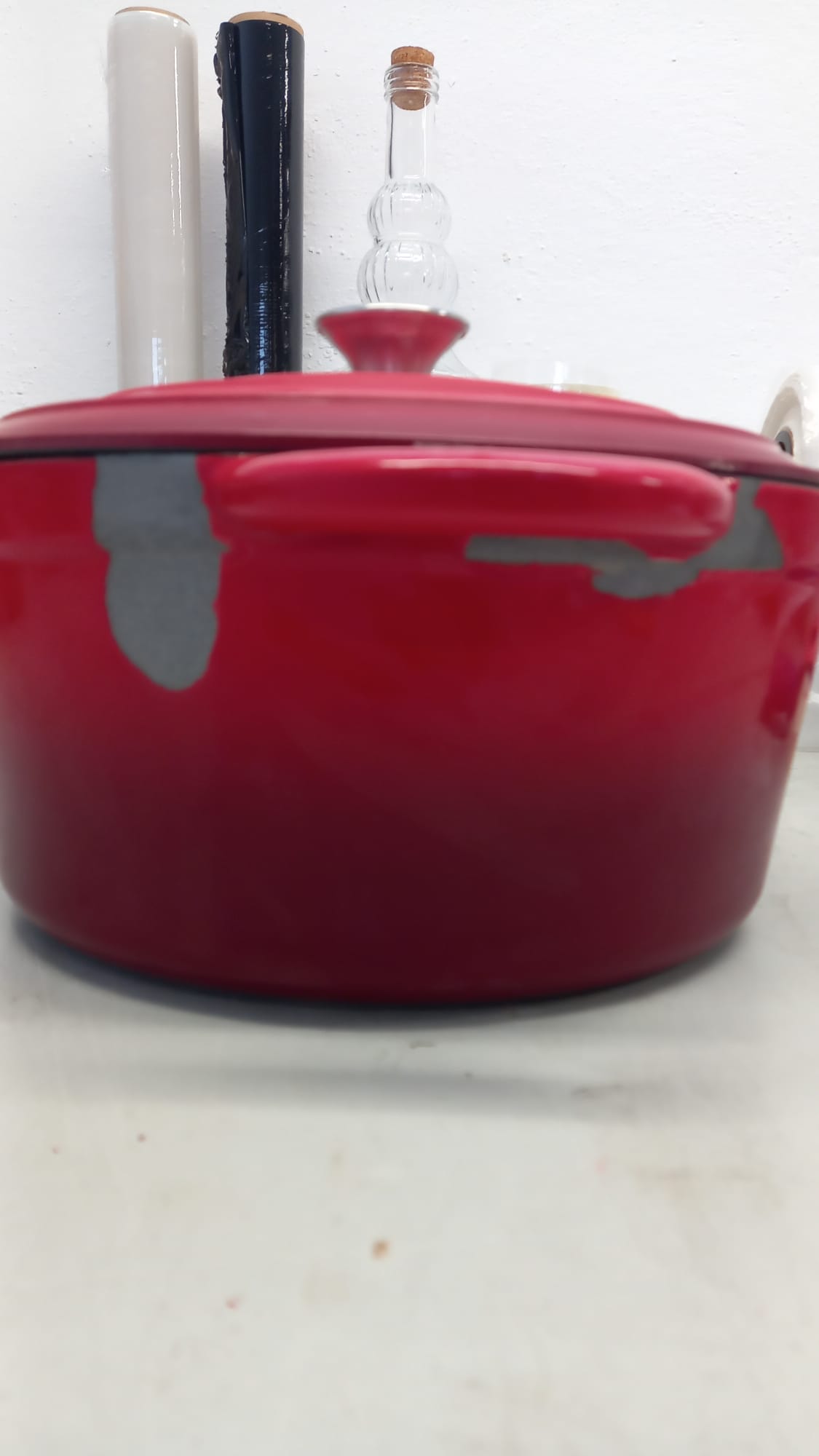 Cratita fonta emailata rosie cu capac 28cm 7litri Resigilat