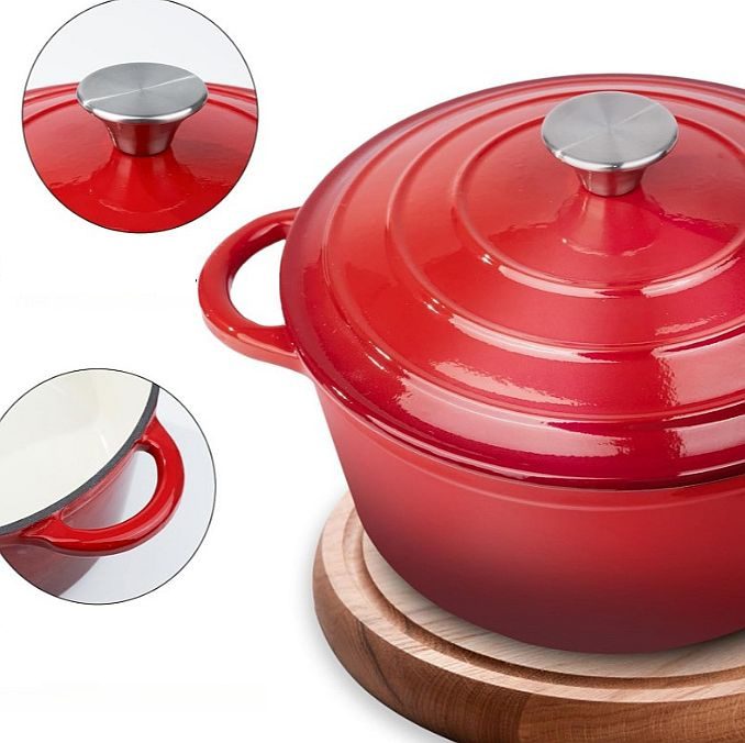 Cratita fonta emailata rosie cu capac 28cm 7litri