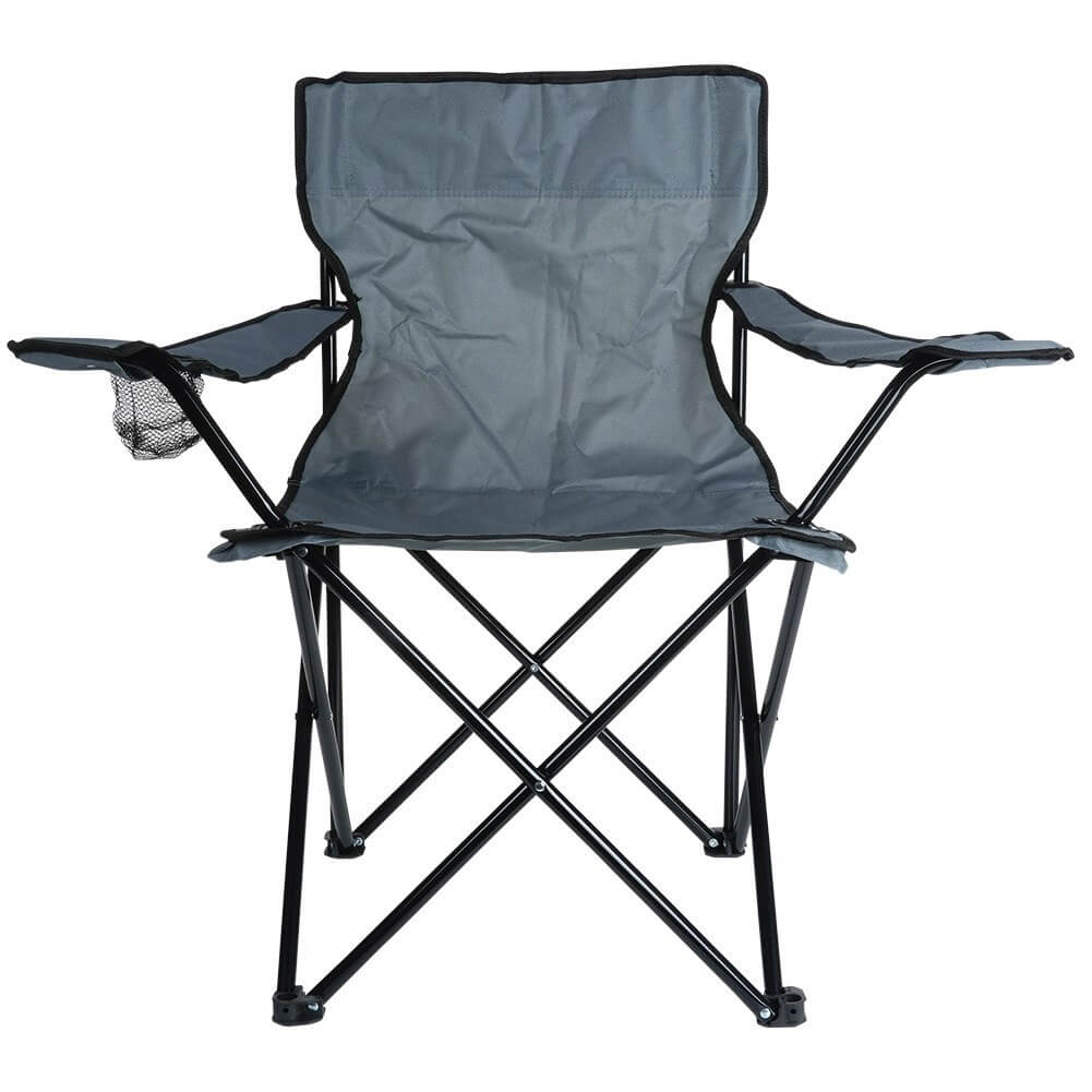 Scaun de camping pliabil cu suport pentru pahar – capacitate 110 kg, culoare gri