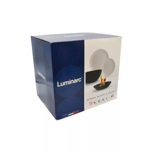 Setul de veselă DIWALI negru–gri, 19 piese se adresează iubitorilor stilului simplu și modern. Realizat din sticlă întărită, setul este ușor, rezistent și ideal atât pentru utilizarea zilnică, cât și pentru ocazii speciale.